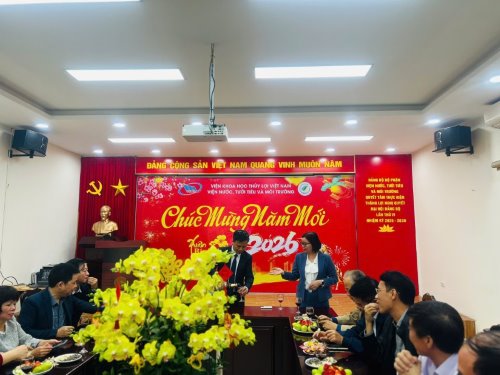 Sáng ngày 23/02/2026, Viện Khoa học Thủy lợi Việt Nam đã tổ chức buổi Gặp mặt đầu xuân Bính Ngọ 2026 theo hình thức trực tiếp kết hợp trực tuyến tại trụ sở Viện và các điểm cầu của các đơn vị trực thuộc. Viện Nước, Tưới tiêu và Môi trường cũng đã tổ chức gặp mặt đầu xuân Bính Ngọ 2026 tại Viện cùng thời điểm và kết nối trực tuyến với đầu cầu Viện Khoa học Thủy lợi Việt Nam. Đại diện lãnh đạo Viện TS. Nguyễn Thị Kim Dung &ndash Phó Viện trưởng chủ trì buổi gặp mặt và toàn thể cán bộ, viên chức và người lao động của Viện. Trong không khí ấm áp của buổi gặp mặt, các đồng chí lãnh đạo Viện và lãnh đạo các đơn vị đã đại diện chúc sức khỏe, bình an, hạnh phúc và thành công tới toàn thể cán bộ, viên chức và người lao động của Viện. Dưới đây là 1 số hình ảnh buổi gặp mặt. TS. Nguyễn Tiếp Tân - Phó Giám đốc Viện Khoa học Thủy lợi Việt Nam kiêm Viện trưởng Viện Nước, Tưới tiêu và Môi trường chúc tết. Nguồn: Tổng hợp